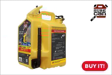 Efficiently deliver diesel with the SureCan 5-Gallon Yellow Diesel Can, constructed from durable high-density polyethylene for long-lasting use. Featuring an ergonomically designed grip, the can ensures a comfortable and secure hold. For controlled pouring, it includes an intuitive release and lock flow trigger, operated with your thumb. The self-ventilating design promotes smooth and steady flow, while the flexible hose rotates 180° to provide maximum convenience during use.
