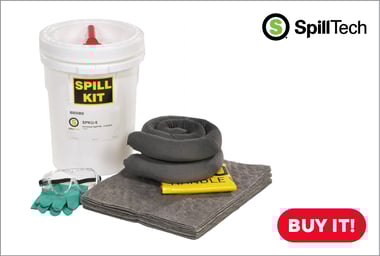 Respond to spills efficiently with the SpillTech 5-Gallon Spill Kit, available in three specialized types: HazMat, Universal and Oil-Only. The HazMat kit is ideal for hazardous or unidentified substances, while the Universal option handles water, coolants and a range of non-aggressive fluids. The Oil-Only kit is formulated to absorb oil, fuel and other petroleum-based liquids. All essential components are contained within a compact, portable five-gallon bucket, which also serves as a disposal container for used absorbents once the spill is under control.