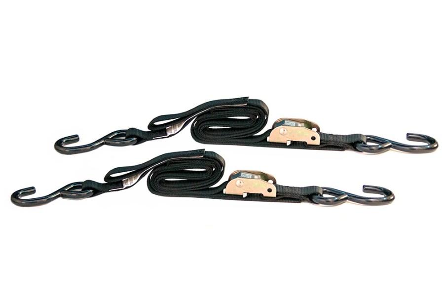 Premium motorcycle tie-downs with integrated soft hooks.
