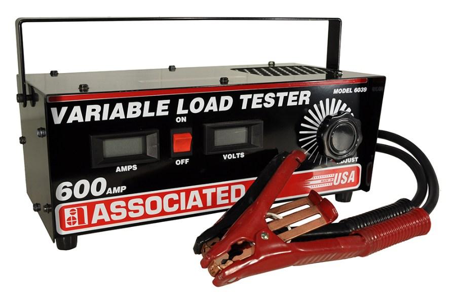 The Associated 6039 provides complete testing for 6 and 12 volt systems in a small package. Simple tests include a state of charge test, battery load test,starter test and charging system test. Easy to read digital voltmeter and ammeter combine with the versatility of a carbon pile load to give quick and precise determination of battery and charging system problems. Spring loaded load knob shuts off automatically. This 0-600 Amp 0-19 volts DC tester has unique curved discs to prevent hot spots. Heavy duty clamps with "Flexi-Spring" cable guards provide added value. The load tester is an easy-to-read, digital voltmeter and ammeter combine with the versatility of a carbon pile load to give a quick and precise determination of battery and charging system problems.