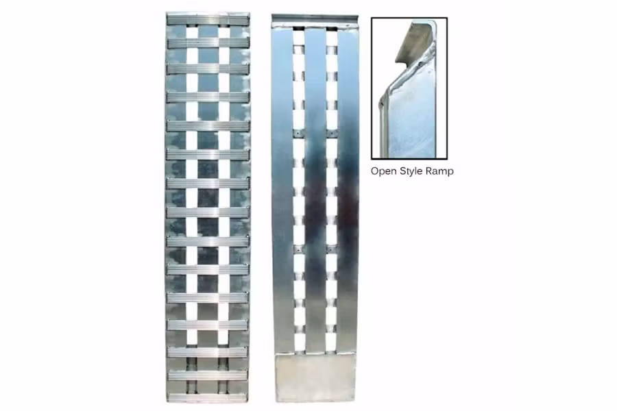 Aluminum Open-End style ramps offer a reliable hook designed to fit up to a 1-1/4" round bar or angle steel. There must be a rail for these ramps to connect to. These ramps have a stub toe end.