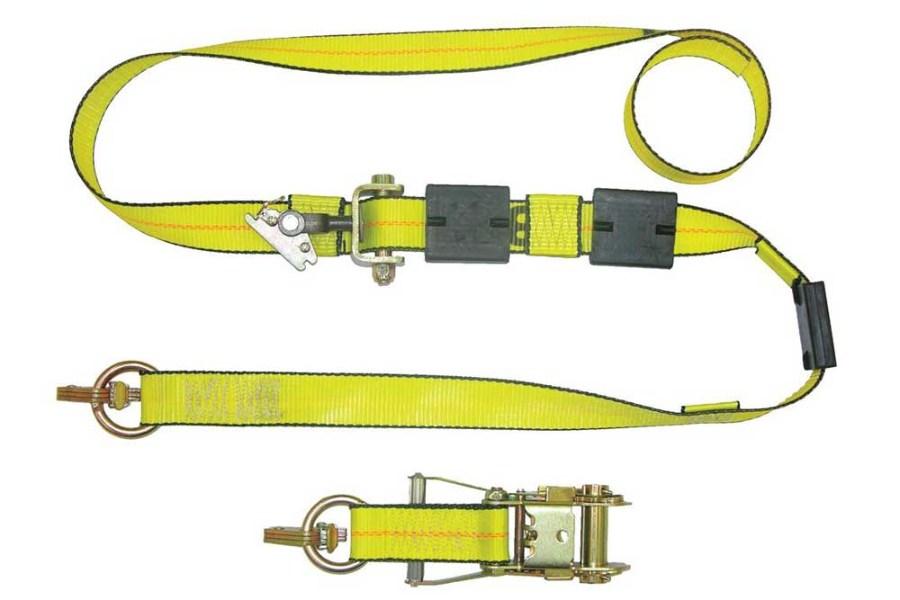 Quickly secure and ship rail, truck and trailer loads. Spring-loaded ratchet buckles tension and release loads.