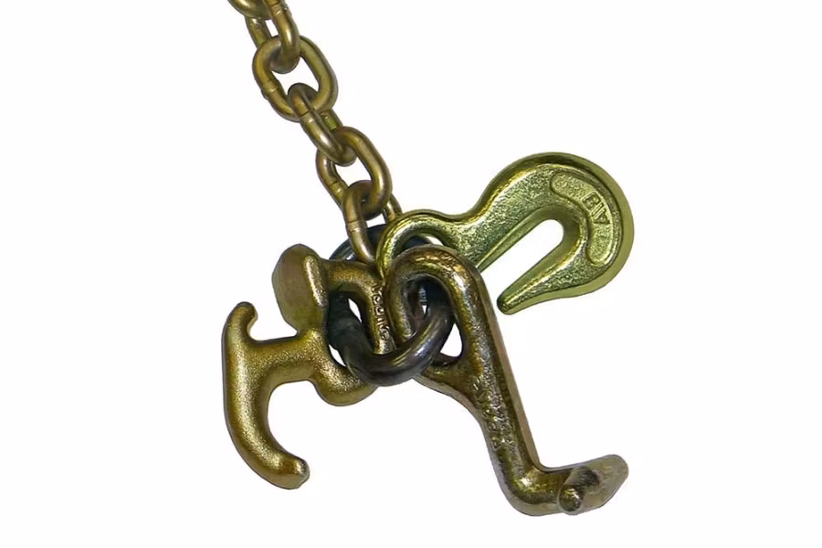 This Grade 70 Auto Transport Chain comes with a three hook cluster attached at