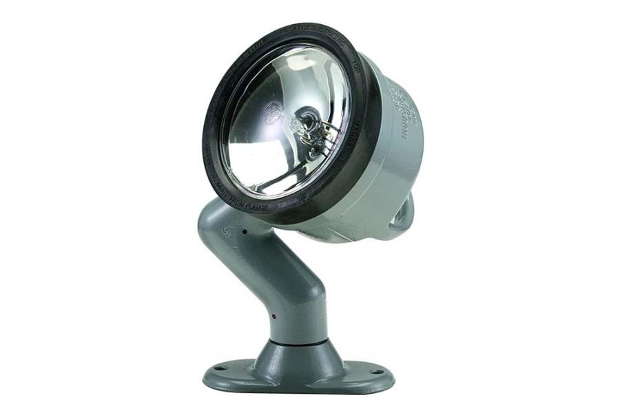 This deck-mount spotlight features a cast aluminum body and a rugged housing.