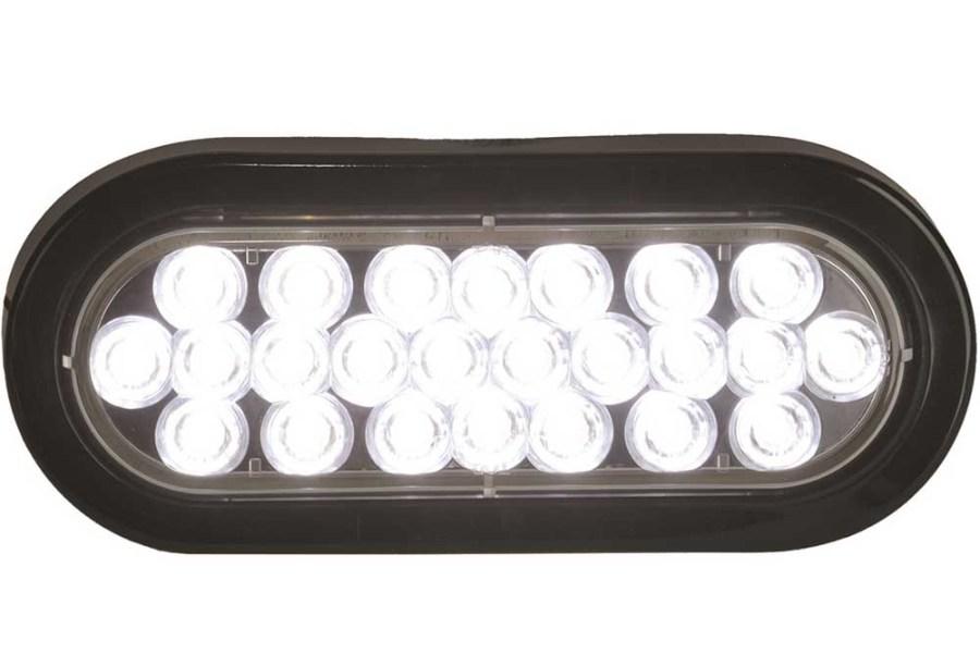 Buyers Products 6 Inch Oval Reverse Light with 24 LEDs is used on trucks and trailers to meet FMVSS/CMVSS 108 regulations. The light has a clear lens and uses a standard PL-2 connection.