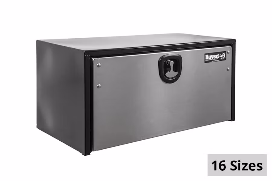 Buyers Products Black Steel Underbody Truck Box with Stainless Steel Door.
