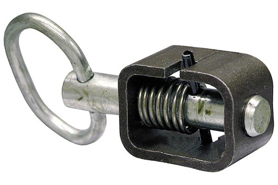 This Buyers Products weld-on latch is designed for 90° engagle application. The spring loaded mechanism can be locked in the open position; turn to put the spring in the closed position. This is a 5/8" weld on spring latch assembly in a heat-treated steel tube. It measures 2.53" x 4.68" with a .62" bolt width.