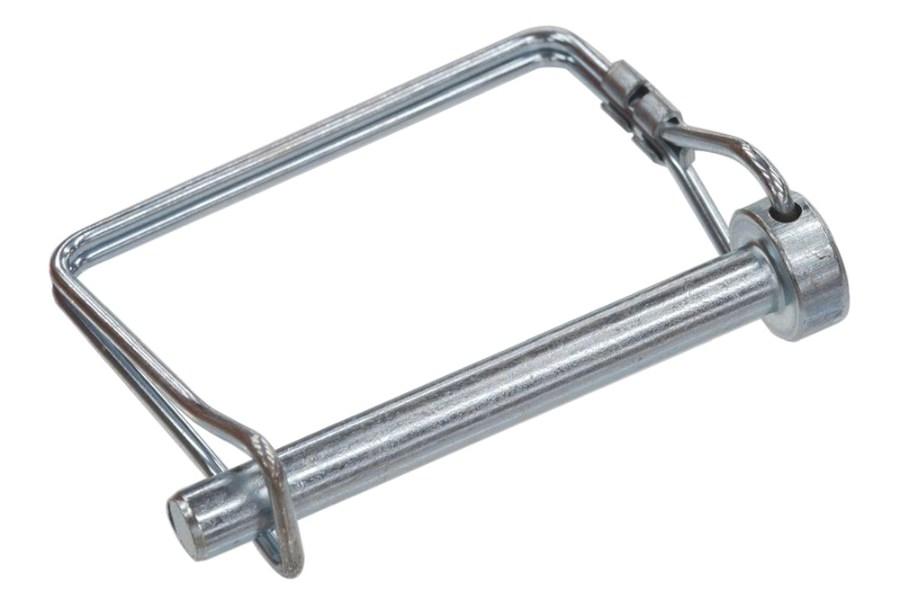 Carbon steel lynch pin for a dolly mount. It acts as a fastener to ensure the dolly remains safely and securely stored.