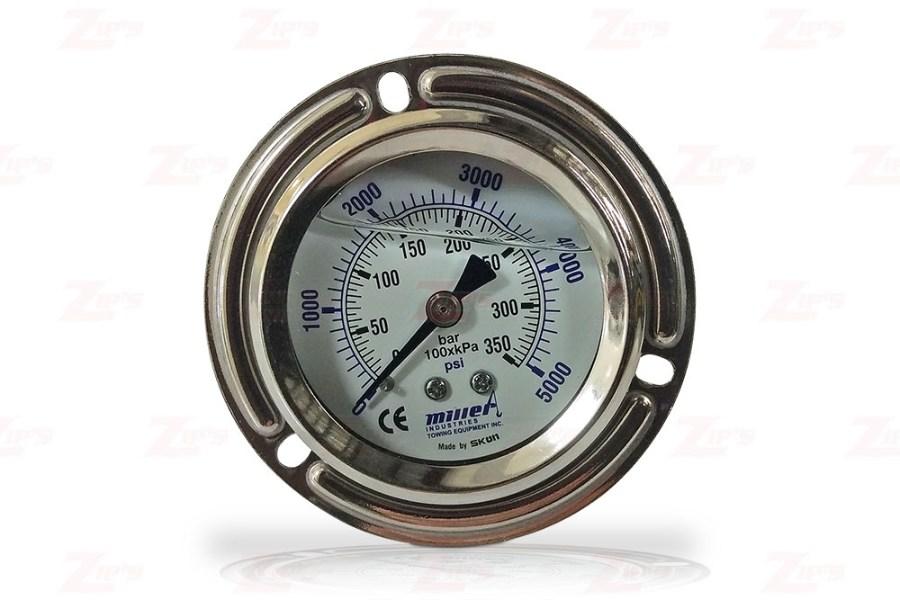 This is a replacement 2" control lever pressure gauge by Miller Industries. This gauge has a reading up to 5,000 PSI.