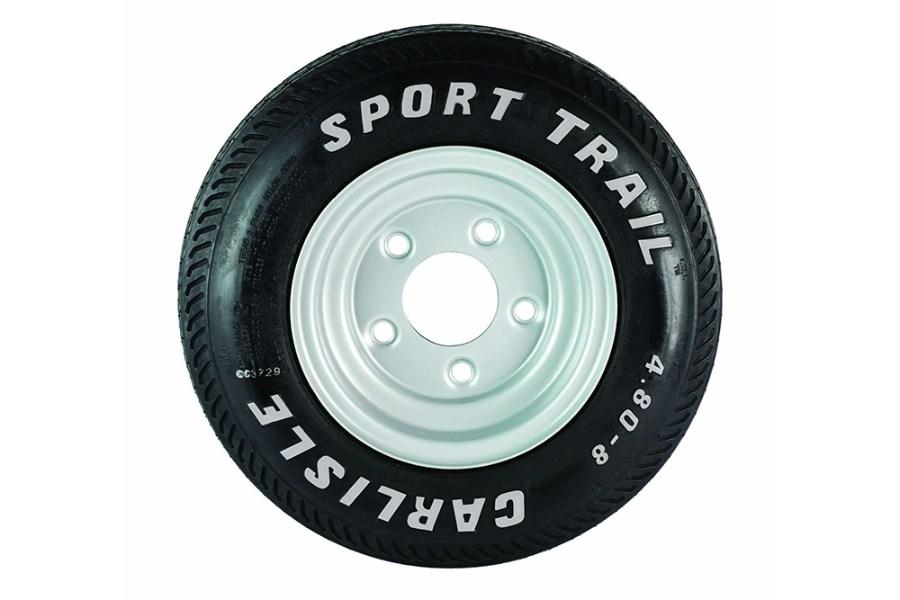This is a replacement painted steel wheel assembly from Collins Manufacturing. This wheel is a 4.80 x 8 tire with a load range of "C" that is rated at 760 lbs. This wheel assembly comes with painted steel rim.