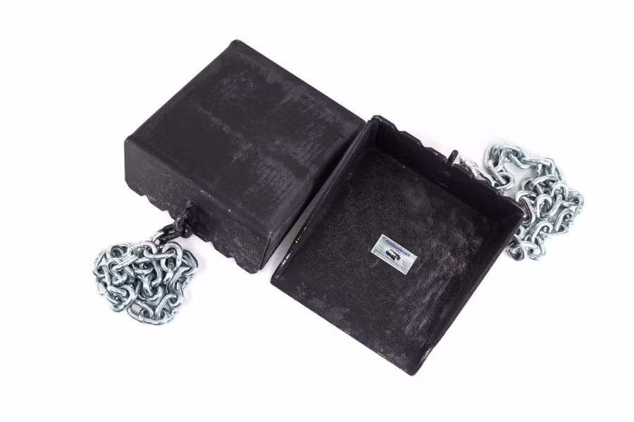These heavy-duty Steel Scotch Chocks anchor to light- and medium-duty trucks for extra holding power. Constructed with 1/4"-thick steel, chocks feature a serrated edge for increased gripping power. A 3-1/2'L chain anchors to your truck to prevent overrunning chock. Sold in pairs.