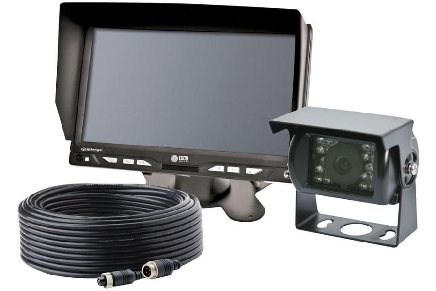 Comprising a feature packed 7.0 LCD high resolution color monitor with remote control and basic color infrared camera the EC-K7000B delivers excellent picture quality even in low light conditions. The compact monitor includes a sun screen and allows for unobtrusive installation without compromising viewable screen area. Kit is expandable up to 2 cameras.