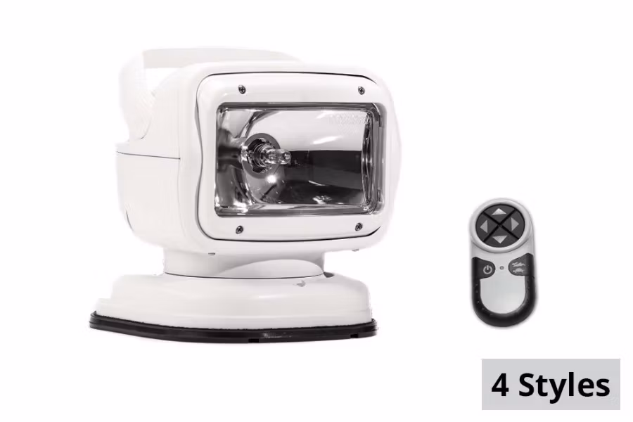 This is a Radioray halogen spotlight by Golight Inc. This light measures 7" x 7" x 6.5" and has a maximum beam distance of 3113 feet . This light features a 135° vertical axis rotation a with a 370° horizontal axis rotation making it perfect to get light exactly where you need it on the recovery scene. This light comes in an ASA white plastic housing making it dur able in any weather condition you would be in. This Golight spotlight is backed by a 3 year warranty.