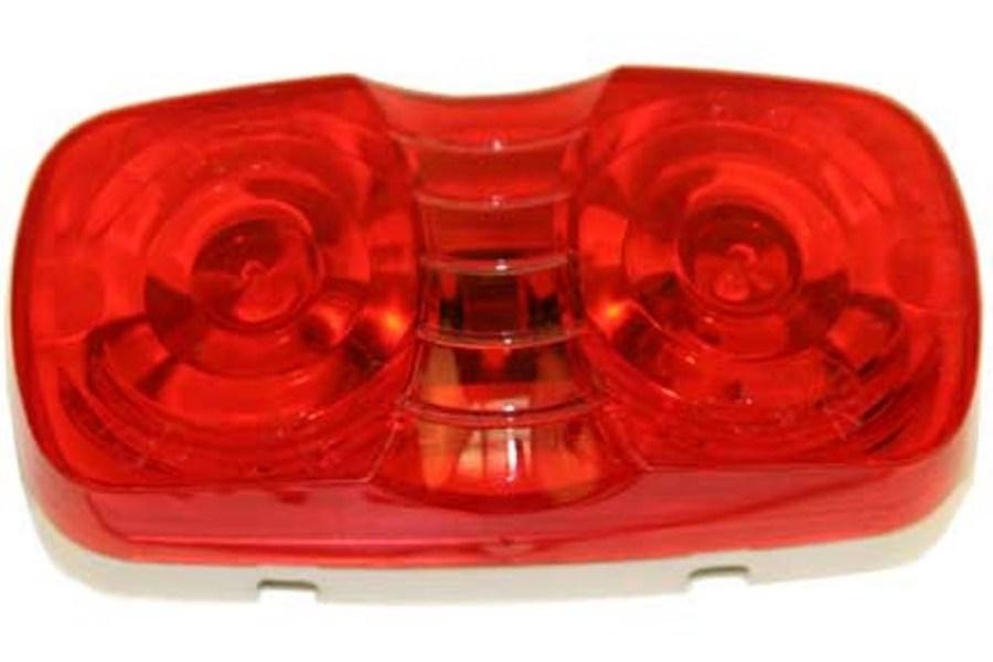 This Red Marker Light comes with 2 bulbs and has a "scalloped dip" style lens. This light is also equipped with a plastic Dura-mold base.