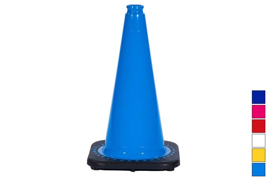 JBC Revolution Series Cones are the leader in the traffic safety industry. Revolution Series Cones are made from an innovative injection molded design that holds up in all temperatures and maintains color in difficult UV situations. Indented handles at the top allow the cones to easily be picked up and stacked. The black bases are made entirely from recycled materials and are marked with a unique dotted pattern. Spot the dots to know it's JBC!