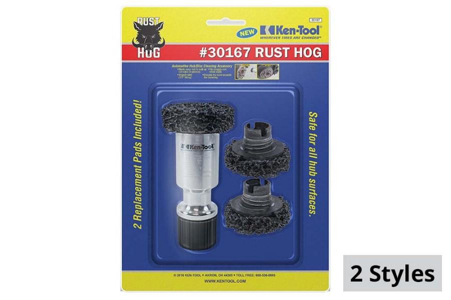 The Airblast Bead Seater Rust Hog Hub Cleaning Tool by Ken-Tool is a versatile and effective solution for cleaning wheel hubs, mating surfaces, wheel studs, and more. Compatible with all 1/2" drive impact guns, whether air or electric, this tool is easy to use and fits seamlessly into existing workflows. Featuring super abrasive synthetic pads, the Rust Hog Hub Cleaning Tool blasts away rust and debris. By eliminating rust and debris, this tool helps prevent improper torque, balancing issues, and the risk of wheels coming off.