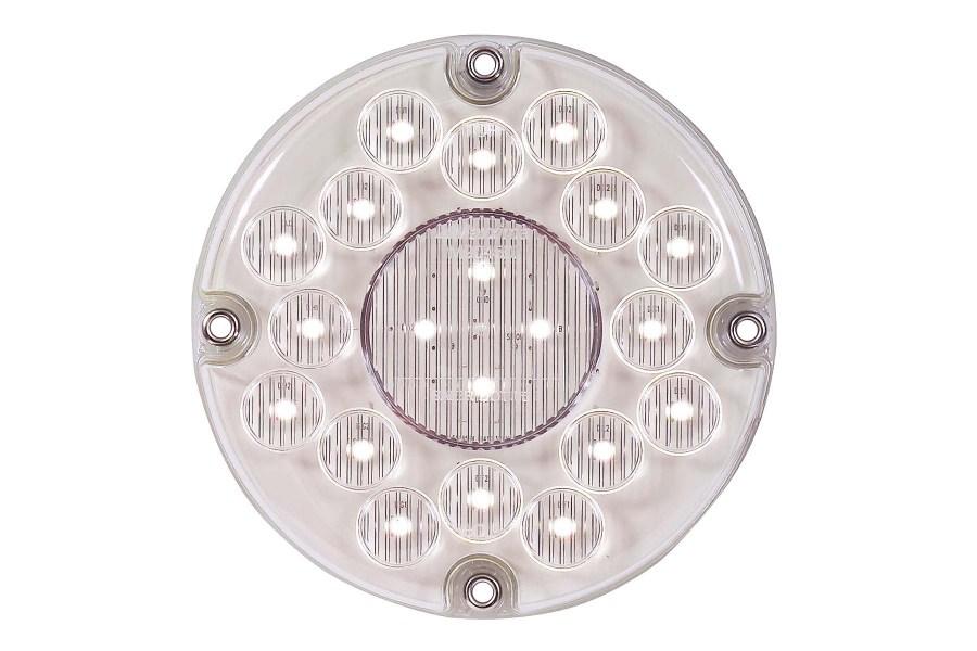 This is a 20 White LED 7" Round Reverse Bus Light by Maxxima. It comes with 2 wire lead connection. LED Lighting from Maxxima lasts 10 times longer than incandescent and drastically reduces power consumption. This light comes Surface mounted with a standard 4 hole mounting pattern.