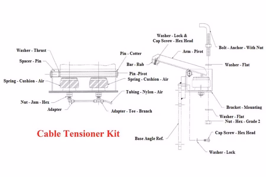 A cable tensioner kit for DP winches with a 14-1/2" wide drum.