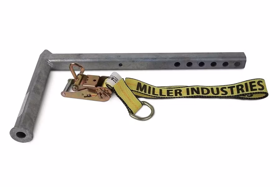 This L-Arm Assembly from Miller Industries comes with a Ratchet and Strap already bolted on. This assembly can be used on Century, Champion, and Challenger 10 Series Car Carriers, as well as, Vulcan Car Carriers that have slide-in L-Arms. This part can be used to replace Part Number 12-0900776.