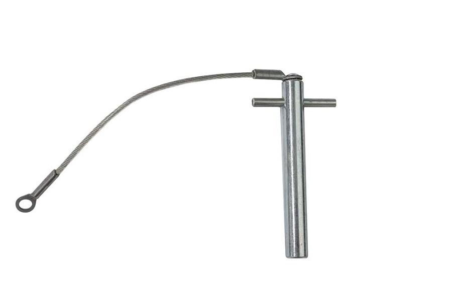 Replacement pivot lock pin with attachment cable for Century new style "Pivot-L" wheel grids. This part can be used to replace Part Numbers: 12-0714415 and 12-0904140.