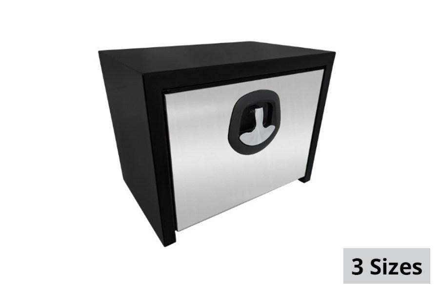 This is Phoenix's 1.2mm Black Powder Coated Steel Body W/ 1.5mm SS Mirror Polished Door underbodie toolbox with the eberhard evolution latch