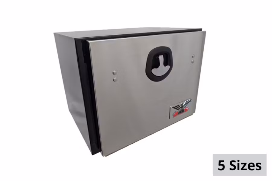 Phoenix Gloss black powder coated steel body and polished stainless steel door. 13 gauge steel body construction with automotive grade bulb. Lockable adjustable T-handle latch (PH1283) includes two keys. Stainless hinge designed to allow top mounting as well as under-body 18"H x 18"D