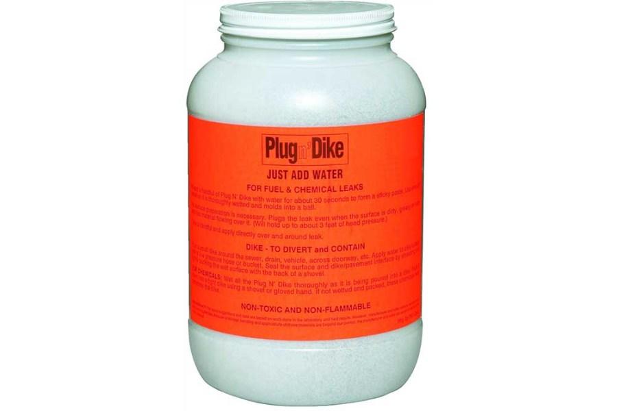 Apply Plug N' Dike sealant directly over leaks, punctures or holes on fuel tanks, drums, pipes and more, even if the surface is dirty or still has liquid flowing over it. Patch cracks and holes to form an immediate seal, then follow-up with epoxy to make a strong, temporary repair. These larger quantities can either be put into smaller containers or they can be used for larger holes. The dry, granular Plug N Dike can also be used to dike and protect a drain or and confine the flow of the spill.