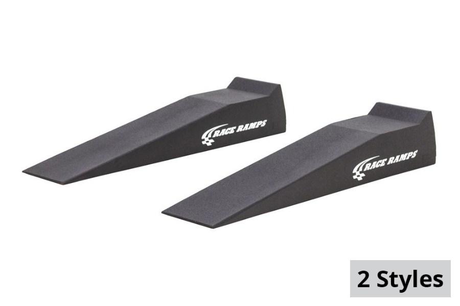 Designed to work with low profile and lowered cars, 56-inch Race Ramps provide 8 inches of lift for better access to the underbody of your vehicle. These tough ramps are sold in pairs and can support up to 1,500 pounds each for a total vehicle weight capacity of 6,000 pounds. The two-piece design gives you the option to remove the ramp once your car is stabilized on the top portion for better side access during service or display in showrooms or at shows. Each ramp also comes with a carrying strap for easy transport and storage.