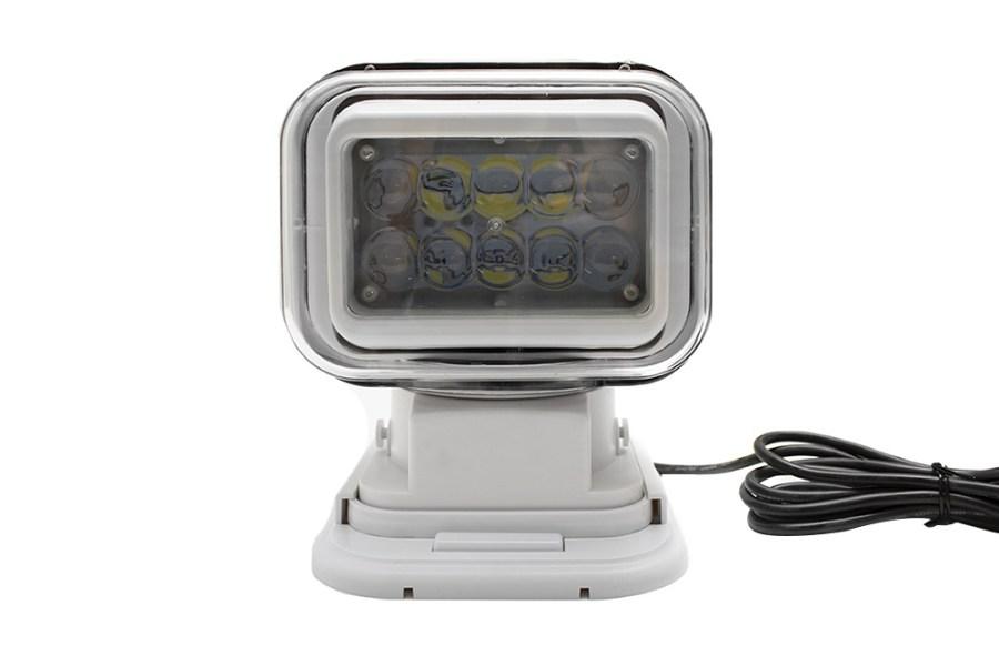 Looking for increased visibility while docking your boat? Wish your boat s deck was illuminated better at night? Marine Sport? Lighting s remote-controlled swivel LED search light is the perfect solution for providing a blast of convenient light wear you need it, when you need it. The included RF remote control maneuvers the light from up to a max distance of 320 feet away. Which mean you can conventionally aim the search light, via the remote, to illuminate the water while landing that epic catch!These marine search lights have a durable shatter resistance lens and a sturdy plastic housing, offering extra protection against UV rays and saltwater environments. Simply put, these lights will have your back wherever current takes you. Marine Sport? Lighting is so convinced that we provide the highest quality marine grade led products around, that we re willing to stand behind our marine LED search lights with a one-year manufacturer s warranty. Marine Sport? Lighting offers you the highest quality marine grade LED products for your boat. The remote controlled RSM50WW marine swivel LED search light is another great example of that cause. Give your boat the Marine Sport? Lighting treatment and we ll see you on the water.