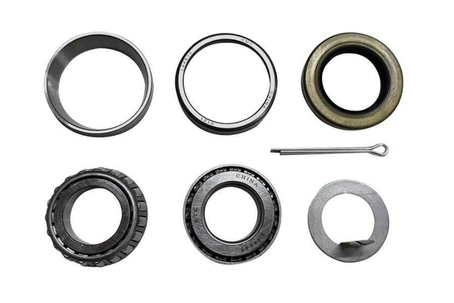 This bearing kit is for a trailer hub with a diameter of 1". Bearing kit comes complete with bearings, seals, and cotter pins. Each kit does one wheel.
