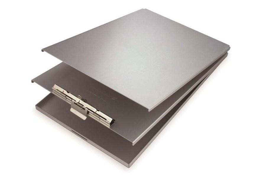 - Hinged writing plate prevents write-throughs and acts as a privacy cover to conceal documents