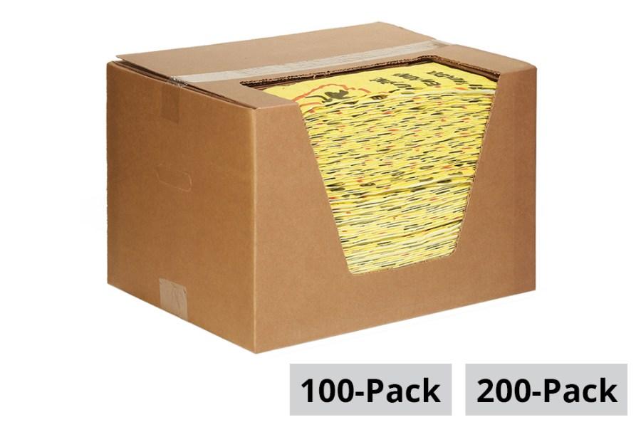 Spills happen in an instance. Respond just as quickly with lightweight and accessible Caution mat pads from SpillTech. These pads measure 15"W x 19"L and, when used together, can cover a large area in a short amount of time. Serving a dual purpose, these hi-vis mats feature a dimpled polypropylene underside to absorb a variety of chemicals and fluids, while the abrasion-resistant top layer gives the pad strength. The cautionary yellow color and safety message alert others to potential slips in the affected area. Count on these pads to quickly absorb leaks, spill and overspray. Be sure to keep a box near your work zone.