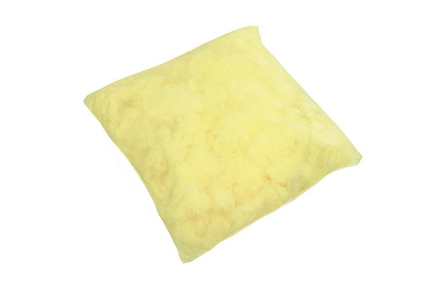 Hazardous spills on a semi trailer, inside a chemical plant or on the floor of a laboratory can be contained and controlled quickly with a poly-blend absorbent pillow from SpillTech. Easily identifiable in cautionary yellow color, each pillow can absorb nearly three gallons of hazardous fluids. Suitable for most chemicals, including battery acid and small concentrations of sulfuric acid, the 18 square pillow can be deployed in a timely response to unwanted chemical spills. The large surface area and spongy filler pull liquids from the floor and catch leaks like a pan. Made from polypropylene, the pillows are sold in packages of 10.