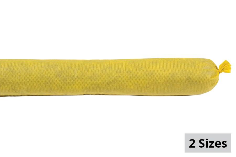 Control hazardous fluid leaking from a steel drum or other compromised container with flexible absorbent hazmat socks from SpillTech. These socks can snugly encircle the base, and the cautionary yellow color warns others of the contamination and the potential danger to personal and environmental health. Designed to slow the leak, the netted polypropylene filler absorbs most chemicals, including battery acid and a variety of other hazardous fluids. Please note, however, the material is not compatible with higher concentrations of sulfuric acid. These socks measure 3" in diameter and are available in two lengths: 4' and 8'. Socks are available in quantities of 10-ct. or 15-ct. packages, respectively.