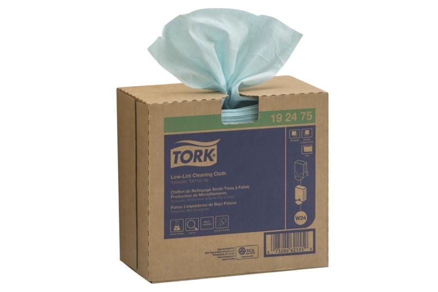Tork low-lint cleaning cloth is a disposable cloth used for cleaning applications. The multipurpose cloths are made from 100% synthetic fibers making them low-lint producing and flexible. They are versatile cloths that can be used with detergents and chemical solvents and come in a convenient popup box.