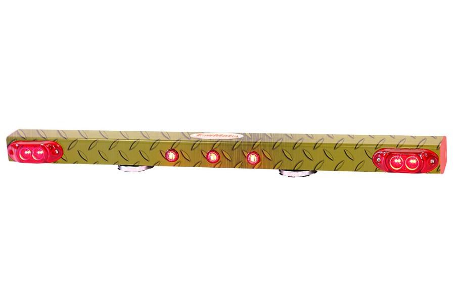 This 32" Wireless Tow Light from TowMate comes with two 4.5" LED modules on each side of three DOT marker lights in the center. It also comes with side marker lights that provide maximum visibility. This light provides stop, tail, and turn signals with ease. Two powerful 100 lb. magnetic mounts offer superior hold and make mounting easy. The light will now come standard with either a Carbon Fiber, or Diamond Plate finish. It will also be hydro dipped, which will give this bar a high sheen appearance and it will be much easier to keep clean. This tow light system comes with a transmitter, charge cord, foot covers, and instructions. Choose from any transmitter at no additional charge. The transmitter options include 4-PIN Round (Standard), 4 PIN Flat, 6 PIN Round, 7 PIN Round, 7 PIN RV Style, and a Hardwire Transmitter.