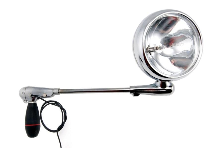 The Beam post-mount spotlight is the only auxiliary lighting product that offers the convenience and safety of instant aimable light when and where you want it! Designed to compliment both modern and classic vehicles, and provide long service life. The interior control handle with fingertip switch provides 360 degree continous horizontal rotation and up to 120 degree vertical adjustment. The 330 series post-mount spotlights feature a 6" halogen lamp which utilizes an H3 bulb for availability and economy; it is rated at 245,000 candlepower, 12 volts, 100 watts and 100 hours lamp life. The lamp has a polycarbonate lens that is break resistant and contains an ultra-violet ray inhibitor to minimize clouding or yellowing. The beam pattern is sharper and therefore provides less glare. The new designer-styled 330 series feature a head assembly made of high impact ABS with heavy-duty chrome finish. Installation kits are sold separately and include mounting bracket, fasteners, gasket, drill guide, trim pieces, locating template and complete instructions for do-it-yourself installation.To ensure proper fit, please contact our Product Sales Consultant