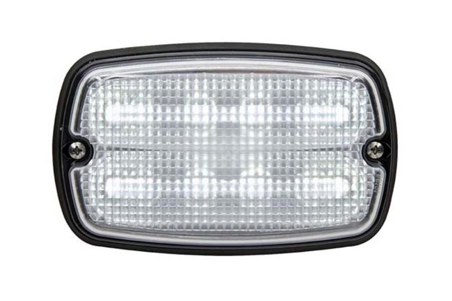 This is a steady burn reverse light, which incorporates the Linear Super-LED and technology. This configuration consists of 12 clear Super-LEDs and a clear optic polycarbonate lens. The back-up light, with the aid of two screws, has the ability to be installed as a surface mount warning light. This light utilizes optic collimators, a metalized reflector, and optic lens for maximum illumination.
