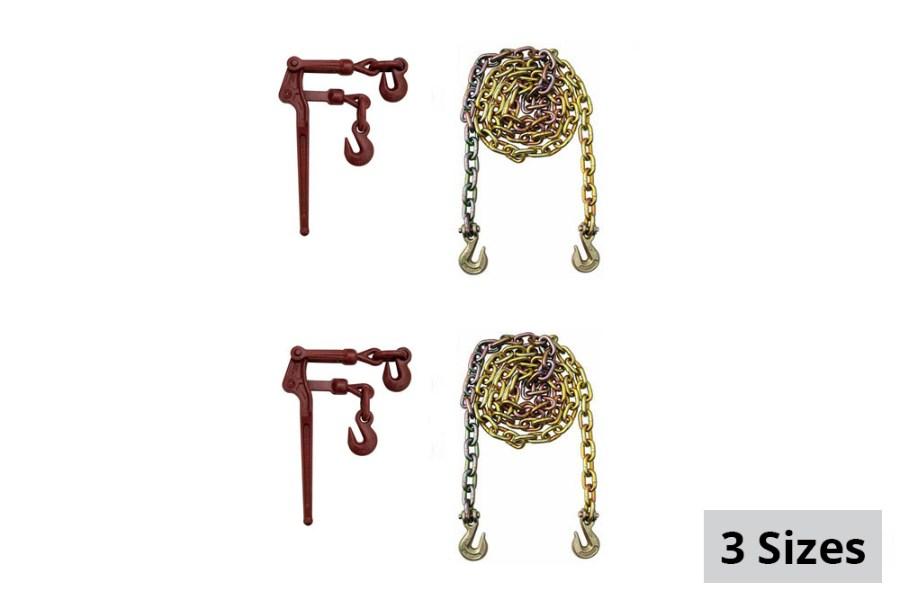 This kit's versatility really shows through its various chain sizes and lengths. When hauling loads, it is critical to have the correct tie down equipment for transportation. The versatility in the kit offerings allows the customer to align the size and strength of the tie down equipment with the load requirements, creating a safe and productive haul. Just wait though! While this product offers the same equipment as P/N ZIPS-LBKIT1, it takes safety to a new level. By offering 2 sets of binders and chains, additional attachment points can help in securing equipment. So don't take safety for granted. No matter what kind of load you are transporting, there is a Zip's binder tie down kit for you.