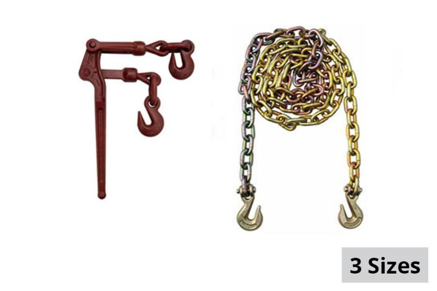 This kit's versatility really shows through its various chain sizes and lengths. When hauling loads, it is critical to have the correct tie down equipment for transportation. The versatility in the kit offerings allows the customer to align the size and strength of the tie down equipment with the load requirements, creating a safe and productive haul. So don't take safety for granted. No matter what kind of load you are transporting, there is a Zip's binder tie down kit for you.