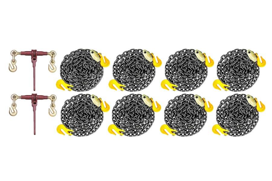 This Medium Duty Chain Kit from Zip's can help you with all of your tie-down & Rigging needs. This kit comes with a variety of 5/16" and 3/8" Grade 80 chains with two Ratchet Binders.